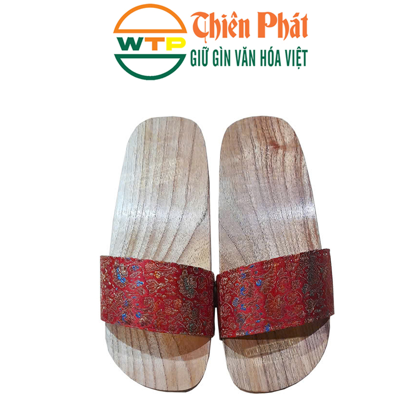 Ngày trước, trong những dịp lễ tết hay những buổi sum họp đông vui, người ta thường thích chọn những món đồ có màu sắc rực rỡ một chút để mang theo niềm vui. Đôi guốc gỗ này cũng mang trong mình tinh thần như thế. Nền gỗ mộc mạc, giản dị, nhưng phần quai lại khoác lên lớp hoa văn đỏ rực rỡ, như một tấm vải gấm nhỏ được đặt lên đôi guốc quen thuộc.