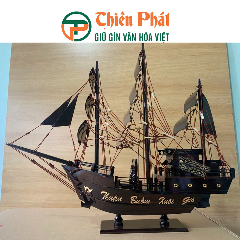 Mô hình được đặt trên đế gỗ chắc chắn, phù hợp để trưng bày tại phòng khách, phòng làm việc, quầy lễ tân hoặc làm quà tặng phong thủy. Thuyền buôn vốn mang ý nghĩa thu hút tài lộc, thuận lợi trong kinh doanh và hanh thông trong sự nghiệp, nên đây là lựa chọn tuyệt vời cho những ai mong muốn một vật phẩm may mắn. Sản phẩm không chỉ là đồ trang trí, mà còn là biểu tượng của sự thịnh vượng, ý chí vươn xa và tinh thần kiên định trước thử thách.