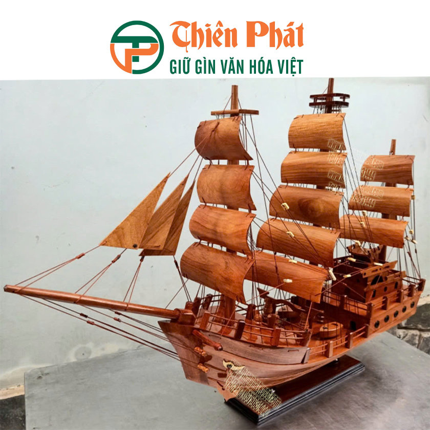 Mô hình được đặt trên đế gỗ chắc chắn, phù hợp để trưng bày tại phòng khách, phòng làm việc, quầy lễ tân hoặc làm quà tặng phong thủy. Thuyền buôn vốn mang ý nghĩa thu hút tài lộc, thuận lợi trong kinh doanh và hanh thông trong sự nghiệp, nên đây là lựa chọn tuyệt vời cho những ai mong muốn một vật phẩm may mắn. Sản phẩm không chỉ là đồ trang trí, mà còn là biểu tượng của sự thịnh vượng, ý chí vươn xa và tinh thần kiên định trước thử thách.